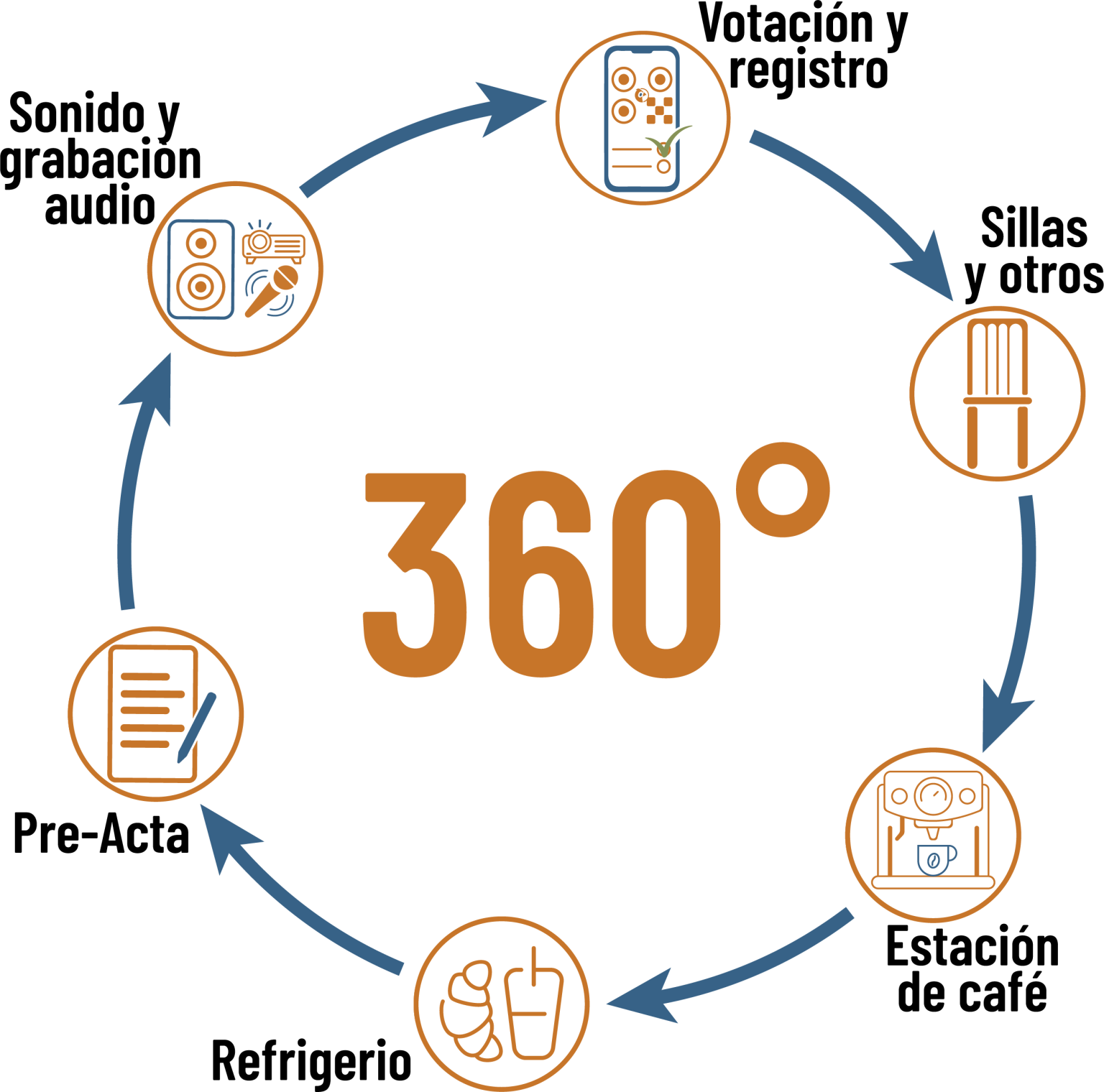 Nos encargamos de toda la logística necesaria para una reunión presencial exitosa. Esto incluye instalación de equipos de sonido, registro de participantes y sistemas de votación. Cada detalle importa para que tu evento sea memorable.